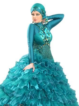 رد: محجبه وعندك مناسبه ومش عارفه تلبسى ايه حلو اوى لون الفستان ده اللون التركواز ده جميل ومميز انا بحب اللون ده اوى ومعظم لبسى اللون ده بس الفستان تحفه ومليان كرنيش جميل ينفع للخطوبه او للشبكه حلو اوى