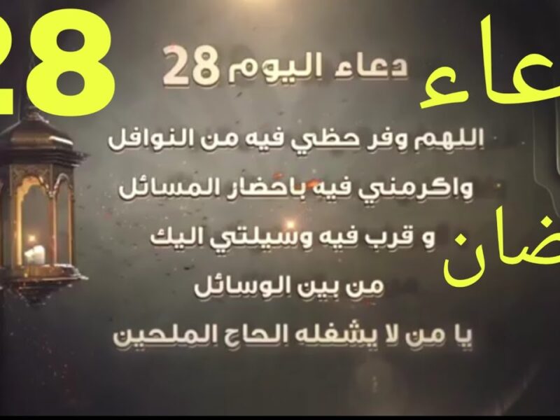 دعاء اليوم الثامن والعشرين من رمضان 2025 , أدعية 28 رمضان مكتوبة 2025 السلام عليكم مع اقتراب نهاية شهر رمضان نرغب في الدعاء إلى الله تعالى بأدعية كثيرة ، عسى أن يبلغنا الله ليلة القدر ، ويغيّر أقدارنا إلى أفضل الأقدار. والآن تعرف إلى دعاء اليوم الثامن والعشرين من رمضان مكتوب. دعاء اليوم الثامن والعشرين من رمضان -قيل أن دعاء يوم 28 رمضان هو: اللّهُمَّ وَفِّرْ حَظِّي فيهِ مِنَ النَّوافِلِ، وَاكْرِمني فيهِ بِإحضارِ المَسائِلِ، وَقَرِّبْ فيهِ وَسيلَتي إليكَ مِنْ بَيْنِ الوَسائِلِ، يا مَن لا يَشْغَلُهُ إلحاحُ المُلِحِّينَ. -ويمكن أن نزيد في الدعاء فنقول: ربي اشملنا برحمتك وأظلنا بظلك يوم لا ظل إلا ظلك، اللهم حرم أجسادنا على الناس، وارزقنا الجنة مع الأبرار، برحمتك يا عزيز يا اغفار”. -أو نقول: يا رب يا رازق السائلين، يا راحم المساكين، ويا ذا القوة المتين، ويا خير الناصرين، يا ولي المؤمنين، يا غياث المستغيثين، إياك نعبد وإياك نستعين. -اللهم ارزقني فيه رحمة الأيتام، وإطعام الطعام، وإفشاء السلام، وصحبة الكرام، بطولك يا ملجأ الآملين. -ربي فرحنا بخبر جميل، وعافِ كل مريض، وارحم كل ميت، واشرح صدورنا، ويسر أمورنا، واكتب الفرج لكل صابر، واستجابة لكل دعاء. -يا رب اجعل لي فيه نصيبا من رحمتك الواسعة، واهدني فيه لبراهينك الساطعة، وخذ بناصيتي إلى مرضاتك الجامعة، بمحبتك يا أمل المشتاقين. -ربي يا شاهدًا غير غائب، ويا قريبًا غير بعيد، ويا غالبًا غير مغلوب، اجعل لي من أمري فرجًا ومخرجًا، وارزقني من حيث لا أحتسب. -اللهمّ اجعلنا من عتقاء شهر رمضان واجعلنا من المقبولين، -يا رب وقفنا ببابك سائلين فلا تردنا خائبين، ولا عن بابك جودك مطرودين، فإن طردتنا فإنه لا حول لنا ولا قوة إلا بك”. -يا رب اغفر لي ما قدّمت وما أخرت وما أعلنت وما أسررت، وقني فِتْنَةِ المحيا والممات واصرف عني شَرِّ الأعمال”. أدعية 28 رمضان مكتوبة نبدأ الدعاء بـ: بسم الله بسم الله بسم الله. ثم بالإكثار من الحمد والشكر: الحمد لله والصلاة والسلام على رسول الله. ثم بالاستغفار: استغفر الله وأتوب إليه (3 مرات) ونسأل الله بأسمائه الحسنى، وصفاته العلا فنقول: يا أرحم الراحمين برحمتك نستغيث أصلح لي شأني كله ولا تكلني إلى نفسي طرفة عين (3 مرات). مع التسليم بأمر الله فنقول: رضيت بالله ربًا، وبالإسلام دينًا، وبحمد صل الله عليه وسلم نبياً ورسولاً. وخير الدعاء: اللهم إنك عفو تحب العفو فاعف عنا. (3 مرات). اللهم اجعلني فيه من المتوكلين عليك، واجعلني فيه من الفائزين لديك، واجعلني فيه من المقربين إليك، بإحسانك يا غاية الطالبين. يا رب غَشِّنِي فِيهِ بِالرَّحْمَةِ وَ التَّوْفِيقِ وَ الْعِصْمَةِ، وَ طَهِّرْ قَلْبِي مِنْ عَائِبَاتِ التُّهَمَةِ، يَا رَءُوفًا بِعِبَادِهِ الْمُؤْمِنِينَ. اللهم اجعل شهر رمضان بداية ربح لطاعتنا واجعله زيادةً لنا في مودتنا وروضةً مرادنا وبُغيتنا. ربي لا تجعل في قلوبنا بغضًا لأحد واجعلنا من السابقين في الصلاة برحمتك يا حنان يا منان يا ذا الفضل والإحسان. اللهم إني اسألك رزقًا واسعًا طيبًا من رزقك.اللهم رب السموات السبع ورب العرش العظيم اقض عنا الدين واغننا من الفقر.